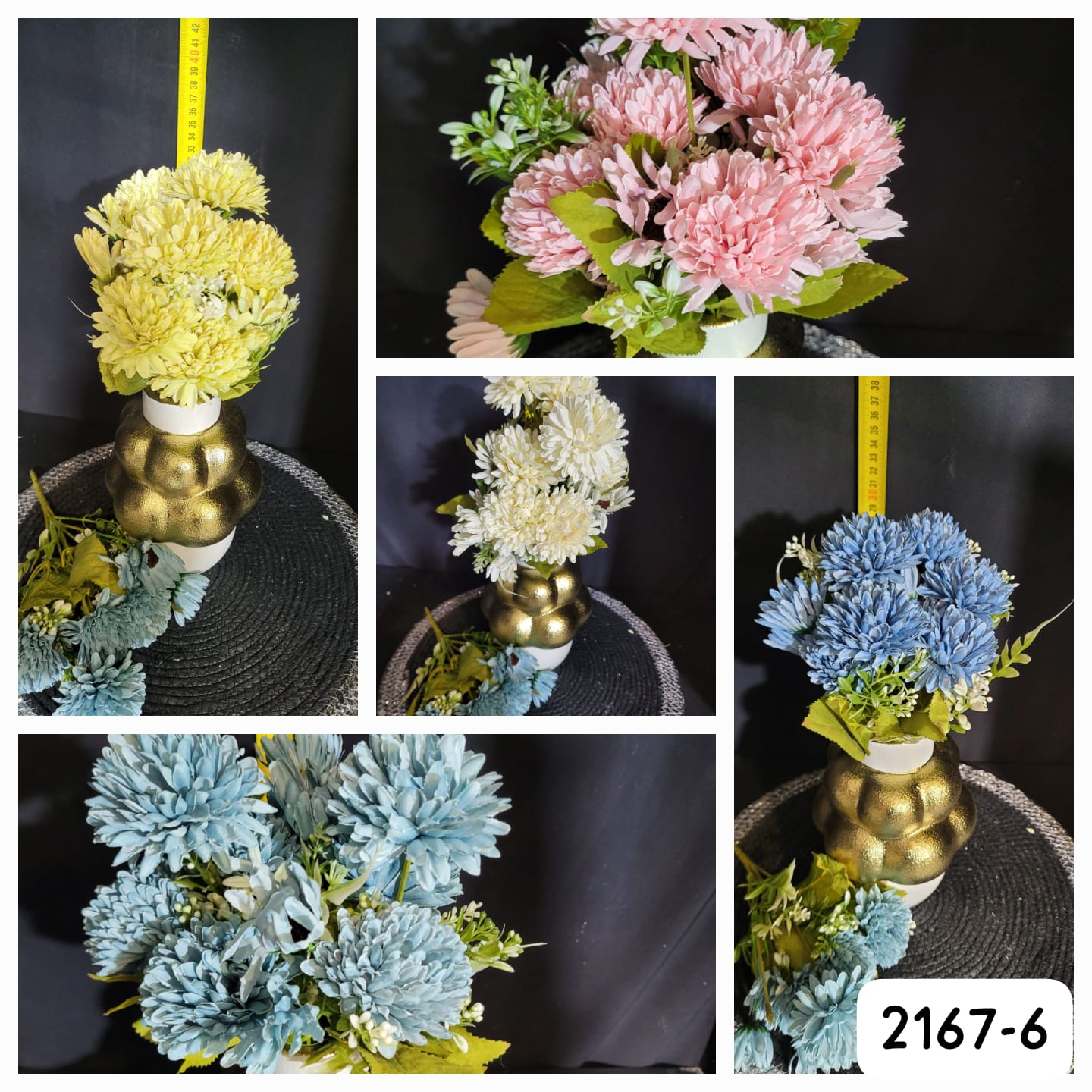 זר פרחים מלאכותיים בעיצוב טבעי ומלא נפח, המדמה פרחי חרצית (Chrysanthemum). כל פרח בנוי משכבות צפופות של עלי כותרת למראה רך, עגול ומלא. משולבים בעלים ירוקים וענפי קישוט שמוסיפים מראה טבעי ורענן. מתאים לעיצוב הבית, משרדים, סידורי אירועים, וכל חלל הדורש טאצ' פרחוני קלאסי.