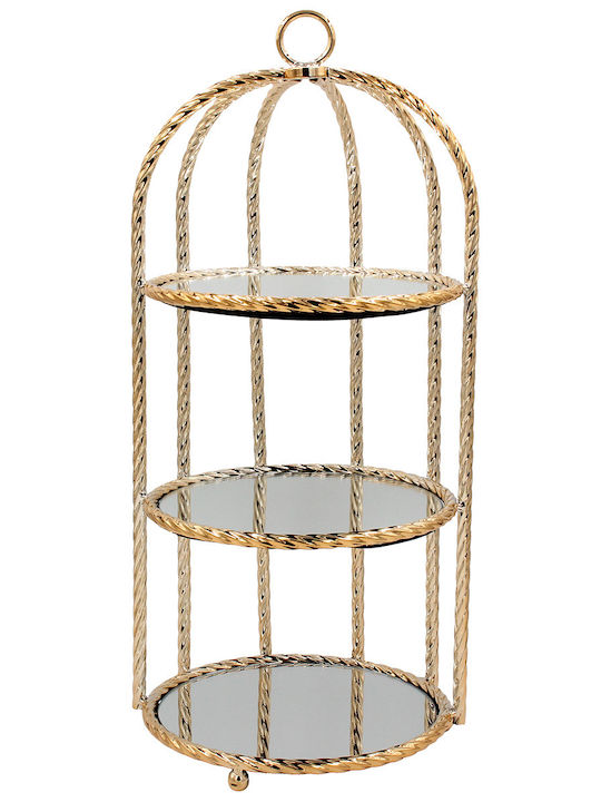 מתקן תצוגה יוקרתי בעיצוב כלוב אלגנטי בציפוי זהב מבריק, כולל שלוש קומות עם בסיסי מראה להנחת פריטים. מתאים במיוחד לעיצוב אירועים, שולחנות קינוחים, עמדות קבלת פנים ותצוגות יוקרתיות. מעניק מראה מרשים ואלגנטי לכל חלל.