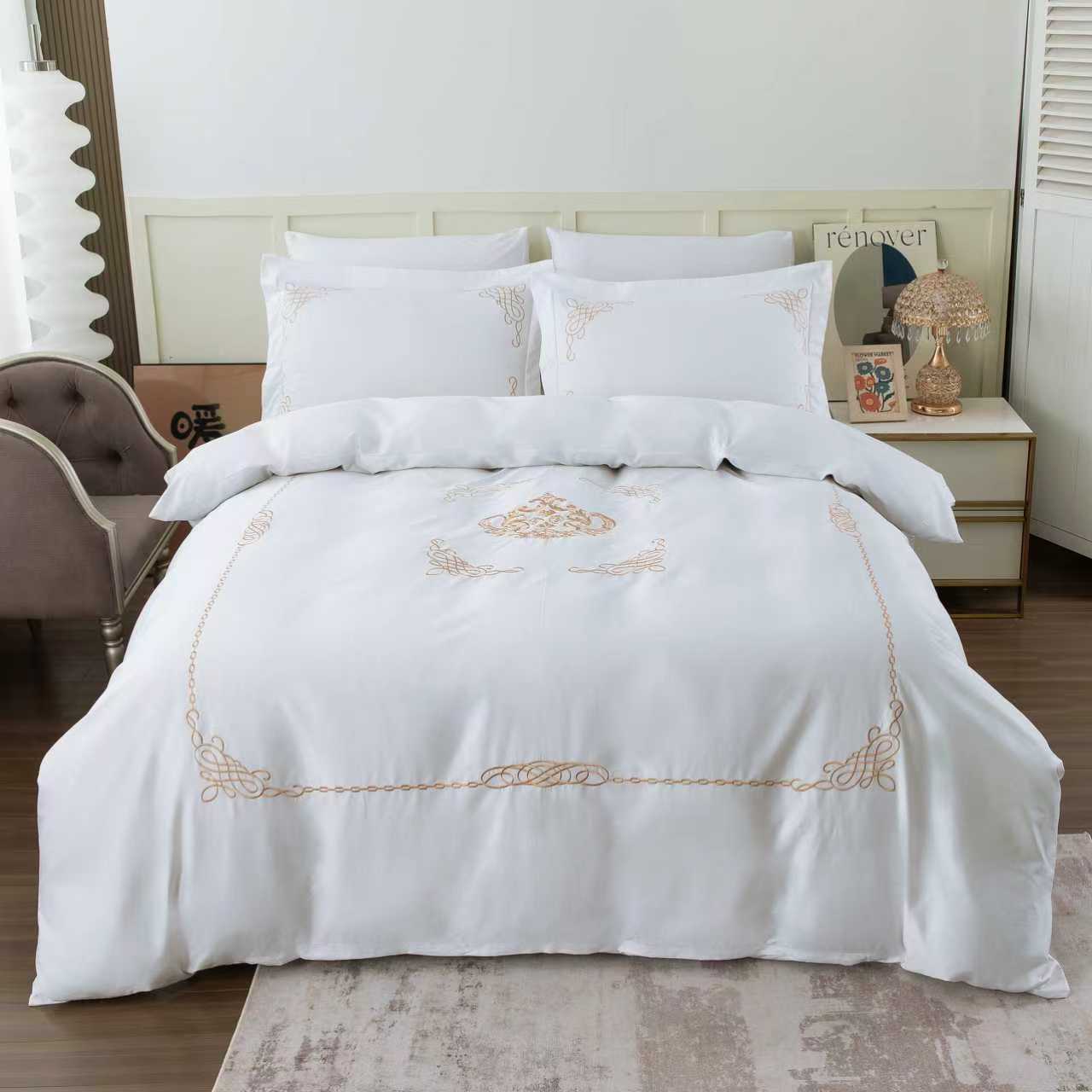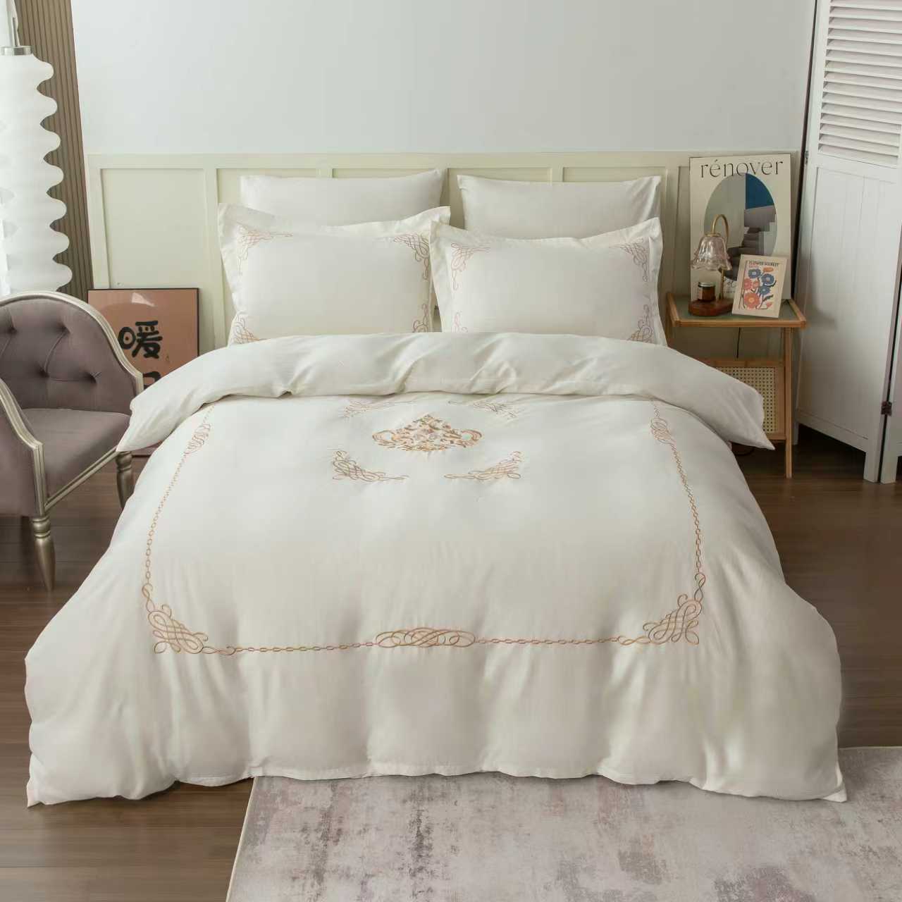המצעים עשויים 100% כותנה מצרית איכותית, הידועה ברכותה, בעמידותה וביכולת הנשימה הגבוהה שלה. צפיפות חוטים של 300 חוטים לאינץ’ מבטיחה בד חלק, נעים במיוחד למגע, עמיד לאורך זמן ושומר על מראהו גם לאחר כביסות רבות. השילוב בין כותנה מצרית לרקמה האלגנטית יוצר חוויית שינה מפנקת ובריאה.